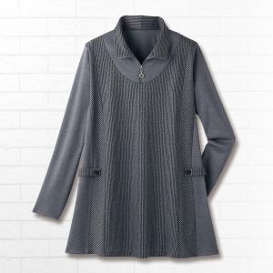 トップス プルオーバー レディース おしゃれ ミセス シニア ファッション 40代 50代 60代 70代 80代 ストライプ切替えジップ使いロングプルオーバー