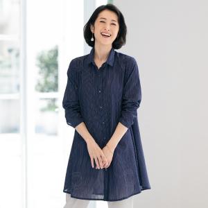 シャツ ブラウス レディース おしゃれ 春夏 ミセス シニア ファッション 40代 50代 60代 70代 80代 和調ストライププリントチュニックブラウス