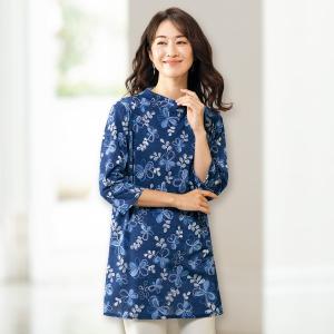 プルオーバー トップス レディース おしゃれ 春夏 ミセス シニア ファッション 40代 50代 60代 70代 80代 フラワー柄ロングプルオーバー