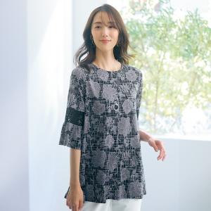 チュニック 大人可愛い おしゃれ 春夏 ミセス シニア ファッション 40代 50代 60代 70代 80代 ボタニカルプリント袖レース切替えチュニック