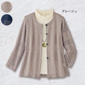 カーディガン レディース おしゃれ 春夏 ミセス シニア ファッション 40代 50代 60代 70代 80代 透かし編みサマーニットカーディガン