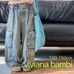 韓国子供服 カーゴデニムパンツ ビンテージ加工ワイドパンツトレンドボトムス 長ズボン 男の子 女の子 100 110 120 130 140 150