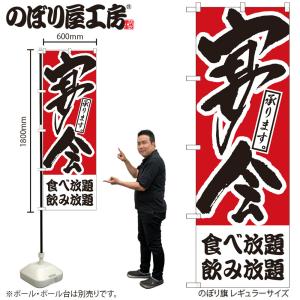 のぼり のぼり旗 H-413 宴会 食べ放題、飲み放題 W60×H180cm 1枚 三方三巻 販促 商売繁盛(受注生産品/メール便は3枚まで)