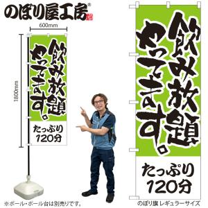 のぼり のぼり旗 H-417 飲み放題やってます たっぷり120分 W60×H180cm 1枚 三方三巻 商売繁盛(受注生産品/メール便は3枚まで)
