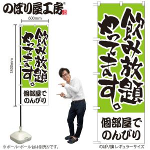 のぼり のぼり旗 H-418 飲み放題やってます 個部屋でのんびり W60×H180cm 1枚 三方三巻 商売繁盛(受注生産品/メール便は3枚まで)