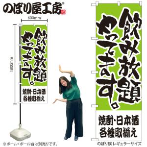 のぼり のぼり旗 H-419 飲み放題やってます 焼酎・日本酒各種取揃え W60×H180cm 1枚 三方三巻 販促(受注生産品/メール便は3枚まで)