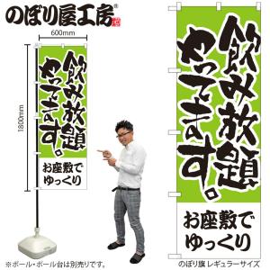 のぼり のぼり旗 H-420 飲み放題やってます お座敷でゆっくり W60×H180cm 1枚 三方三巻 商売繁盛(受注生産品/メール便は3枚まで)