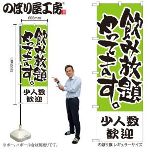 のぼり のぼり旗 H-421 飲み放題やってます 少人数歓迎 W60×H180cm 1枚 三方三巻 販促 商売繁盛(受注生産品/メール便は3枚まで)