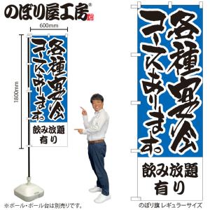 のぼり のぼり旗 H-431 各種宴会コースあります 飲み放題有り W60×H180cm 1枚 三方三巻 商売繁盛(受注生産品/メール便は3枚まで)