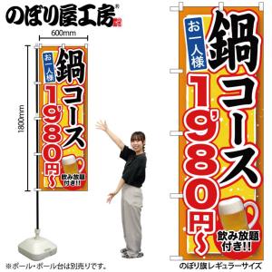 のぼり のぼり旗 SNB-548 鍋コース 飲み放題付 1980円〜 W60×H180cm 1枚 三方三巻 商売繁盛(受注生産品/メール便は3枚まで)
