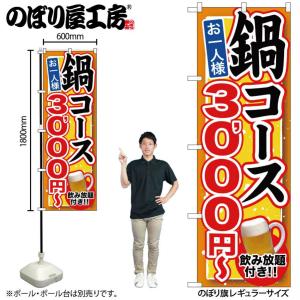 のぼり のぼり旗 SNB-551 鍋コース 飲み放題付 3000円〜 W60×H180cm 1枚 三方三巻 商売繁盛(受注生産品/メール便は3枚まで)