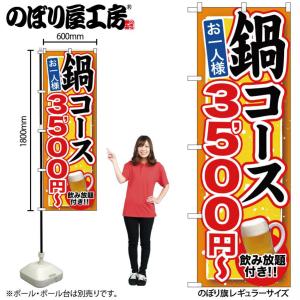 のぼり のぼり旗 SNB-552 鍋コース 飲み放題付 3500円〜 W60×H180cm 1枚 三方三巻 商売繁盛(受注生産品/メール便は3枚まで)