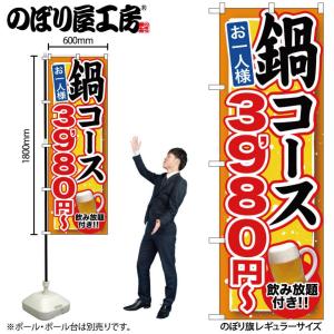 のぼり のぼり旗 SNB-553 鍋コース 飲み放題付 3980円〜 W60×H180cm 1枚 三方三巻 商売繁盛(受注生産品/メール便は3枚まで)