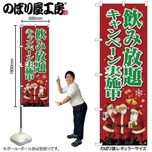 のぼり のぼり旗 SNB-5665 飲み放題キャンペーン実施中 クリスマス W60×H180cm 1枚 三方三巻 (受注生産品/メール便は3枚まで)