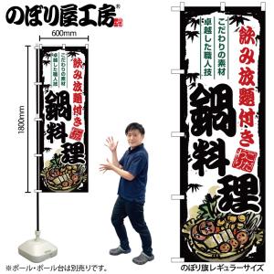 のぼり のぼり旗 SNB-8707 鍋料理 飲み放題付き W60×H180cm 1枚 三方三巻 販促 商売繁盛(受注生産品/メール便は3枚まで)
