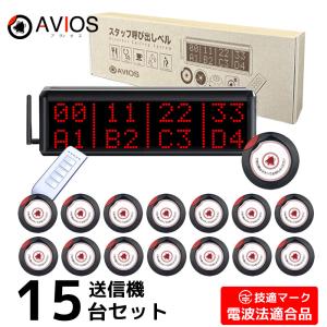 飲食店 ワイヤレスチャイム 8番号表示 チャイム 送信機15個 ブラック×ホワイト 表示削除 リモコン付き 飲食店 居酒屋 焼肉屋 カフェ AVIOS