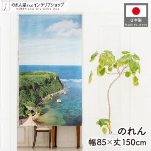 のれん 沖縄 85cm幅 150cm丈 風景 景色 果報バンタ カフウバンタ 幸せ岬 海 崖 写真風 琉球 ウチナー 暖簾 間仕切り(受注生産 46981)
