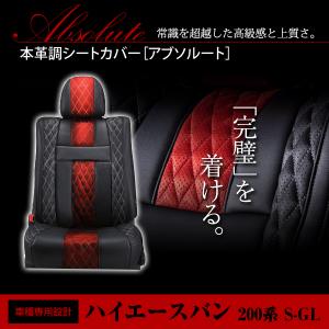 ハイエースバン 200系 S-GL 標準ボディ ワイドボディ 5人 シートカバー アブソルート レッド×ブラック ホワイトステッチ キルティング