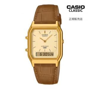 【CASIO CLASSIC(カシオ クラシック) 国内正規品】 CASIO カシオ AQ-230EGL-9AJF デジアナ コンビネーション ゴールド×ブラウン レザーバンド クラシックデザ