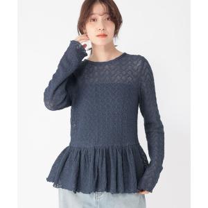 tシャツ レースギャザー切り替えロングスリーブプルオーバー レディース