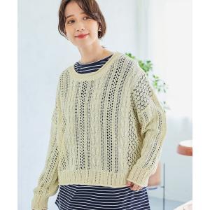 ニット セーター 5ゲージダブルフロント透かしケーブルプルオーバー レディース