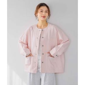 ジャケット ノーカラージャケット コットンノーカラーツイルポケットジャケット レディース