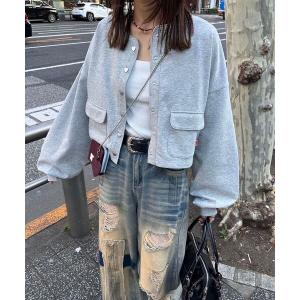 tシャツ ハートボタン配色ステッチスウェットカーディガン レディース