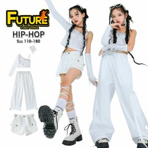 k-pop 衣装 白 へそ出し トップス フリンジ ホワイト キッズダンス衣装 セットアップ ヒップホップ ロングパンツ 短パンツ kpop ダンス衣装 チアガール チア衣装