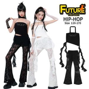 k-pop 衣装 白 黒 キッズ へそ出し トップス ダンス衣装 女の子 セットアップ 袖なし ベルボトム パンツ レース かっこいい ワイドパンツ 韓国 kpop衣装 ヒップ