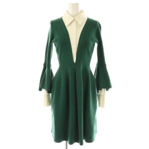 リリーブラウン Lily Brown シャツドッキングニットミニワンピース 長袖 フレア F 緑 グリーン 白 ホワイト /AT ■OS レディース