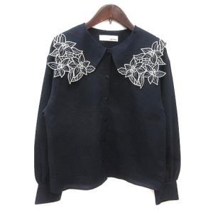 リリーブラウン Lily Brown シャツ 刺繍 長袖 ONE 紺 ネイビー 白 ホワイト /MS レディース