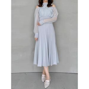 ワンピース レース切替オフショルニットワンピース