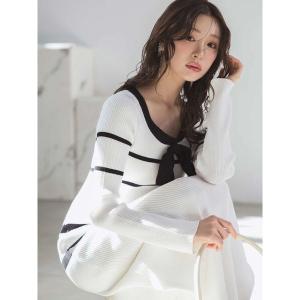 ワンピース バイカラーリボンリブニットワンピース