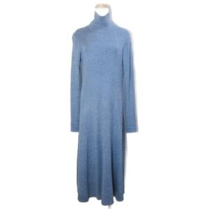 ミラオーウェン タートルネックロングリブニットワンピース 09WN0245023 長袖 フレア 厚手 ウール混 サムホール 0 S相当 青 ブルー /X