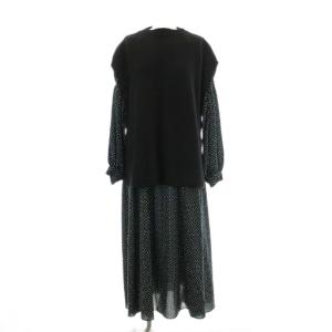 ミラオーウェン Mila Owen 21AW 2点セット ベスト付 ワンピース ロング 長袖 ハート柄 0 ネイビー 紺