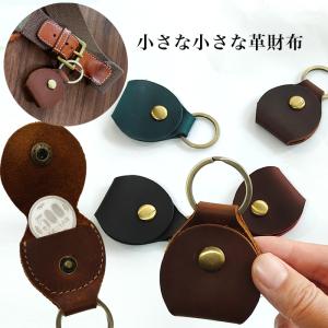AirTag ケース ビンテージ加工 レザー キーホルダー キーリング 小銭 収納 edyコイン QUICPayコイン 革(ブラウン)