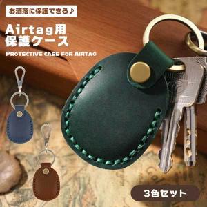 【持ち運び便利】3色セット Airtag用 保護ケースレザー ブラウン グリーン ネイビー 保護カバー ストラップ キーホルダー