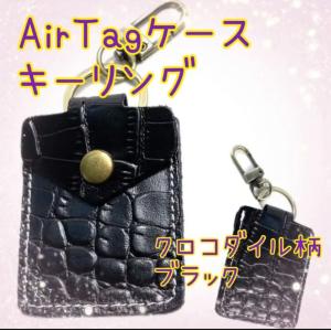 本革 AirTag ケース キーリング キーホルダー ストラップ レザー クロコダイル柄ブラック