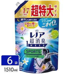 【最大1200円OFF(LYP会員限定)】レノア 超消臭1WEEK 柔軟剤 SPORTS フレッシュシトラス詰め替え 超特大 1510mL×6袋