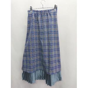 ◇ ⊇ STRIPE CLUB ストライプクラブ チェック ロング丈 プリーツ スカート サイズF ブルー レディース E
