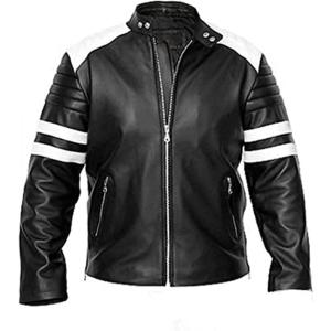 【並行輸入品】Men's Genuine Leather Fight Stripe Club Jacket Cafe Racer Biker