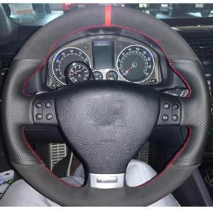 【並行輸入品】SKITTO ブラックスエードハンドステッチカーステアリングホイールカバー、フォルクスワーゲンゴルフ5 Mk5 GTIゴルフ5 R