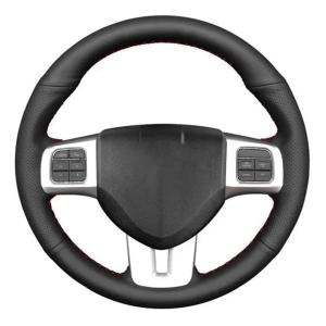 【並行輸入品】SKITTO 手縫いのブラックレザーカーステアリングホイールカバー、ダッジダート2013 2016フォルクスワーゲンルータン201