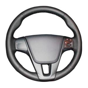 【並行輸入品】SKITTO ブラックレザーハンドステッチカーステアリングホイールカバー、ボルボS60 2011 2014 V40 V60 XC6