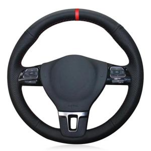 【並行輸入品】SKITTO ブラックレザーカーステアリングホイールカバー、フォルクスワーゲンゴルティグアンパサートB7パサートCCトゥーランジェ