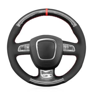 【並行輸入品】SKITTO カーボンブラックスエードカーステアリングホイールカバー、アウディ A4 S4 2005 2012 A6 S6 A8