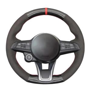【並行輸入品】SKITTO カーボンブラックスエードハンドミシンカーステアリングホイールカバー、アルファロメオジュリア2020 2022ステルヴ