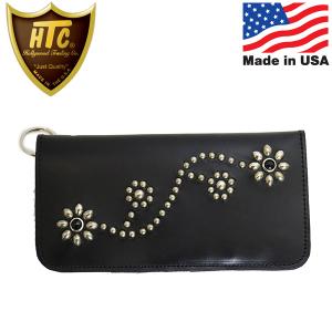 HTC(Hollywood Trading Company) T-1 Wallet #24S ロングウォレット ブラックレザーxシルバースタッズxブラックストーン