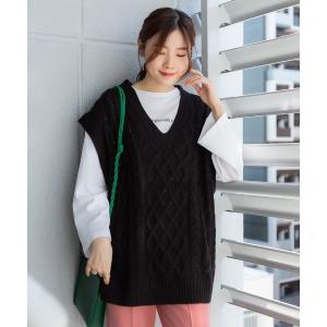 ベスト ジレ atONE ケーブル編みVネックベスト レディース