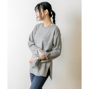 tシャツ atONE ラウンドヘム サイドスリット ロングTシャツ 長袖 レディース